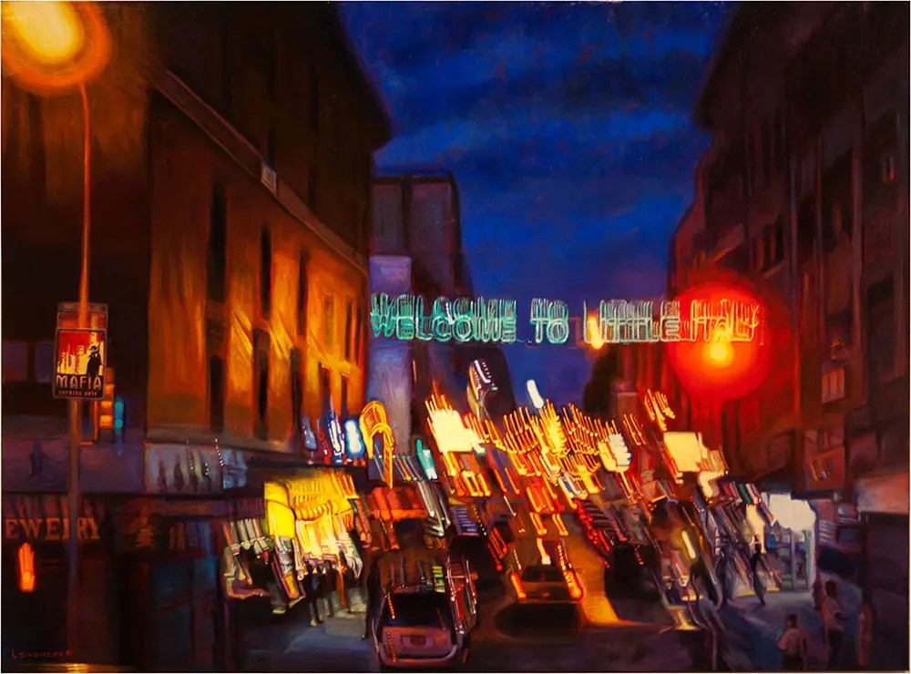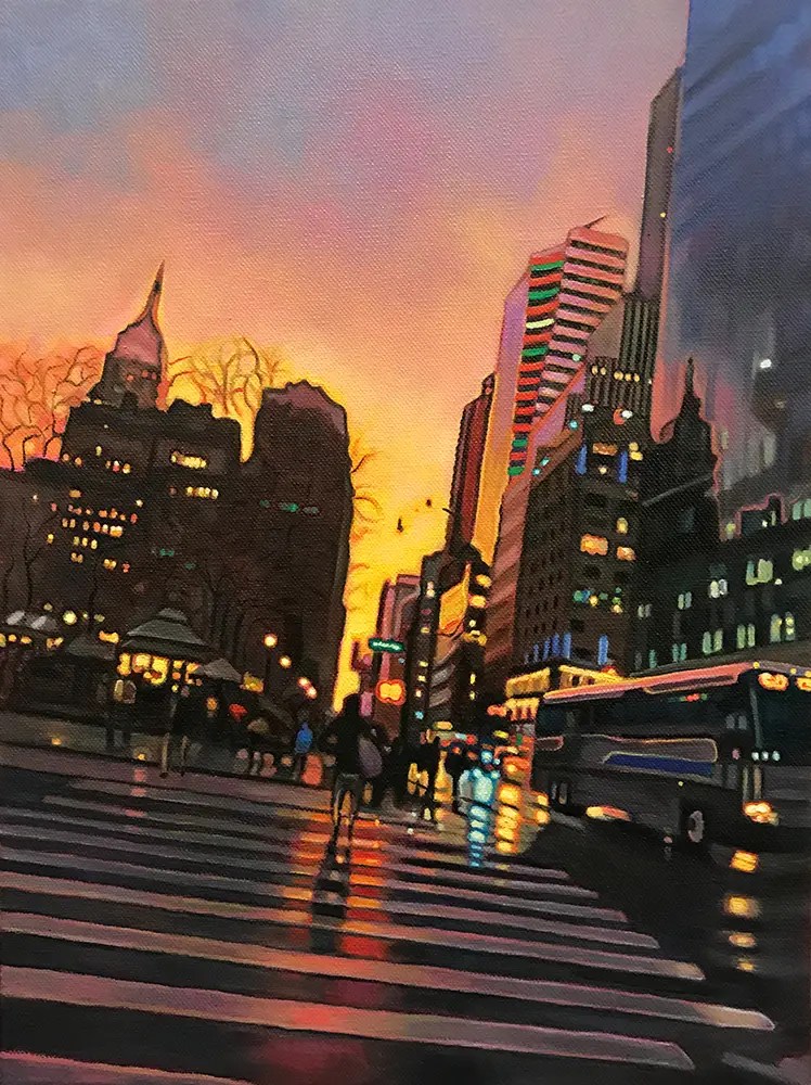 My examination and research are a snapshot of modern American society. Cityscapes became my niche because I’ve always been drawn to perspective, automobiles, and the urban landscape. The metropolitan landscape has the qualities of contemporary life. Human-made lighting offers a juxtaposition of the natural sky. The urban landscape has elements of architecture, colored lighting, textures, and different reflective materials. I’m inspired by a beautiful sky, perspective, and cityscape lights intertwined with the human body.