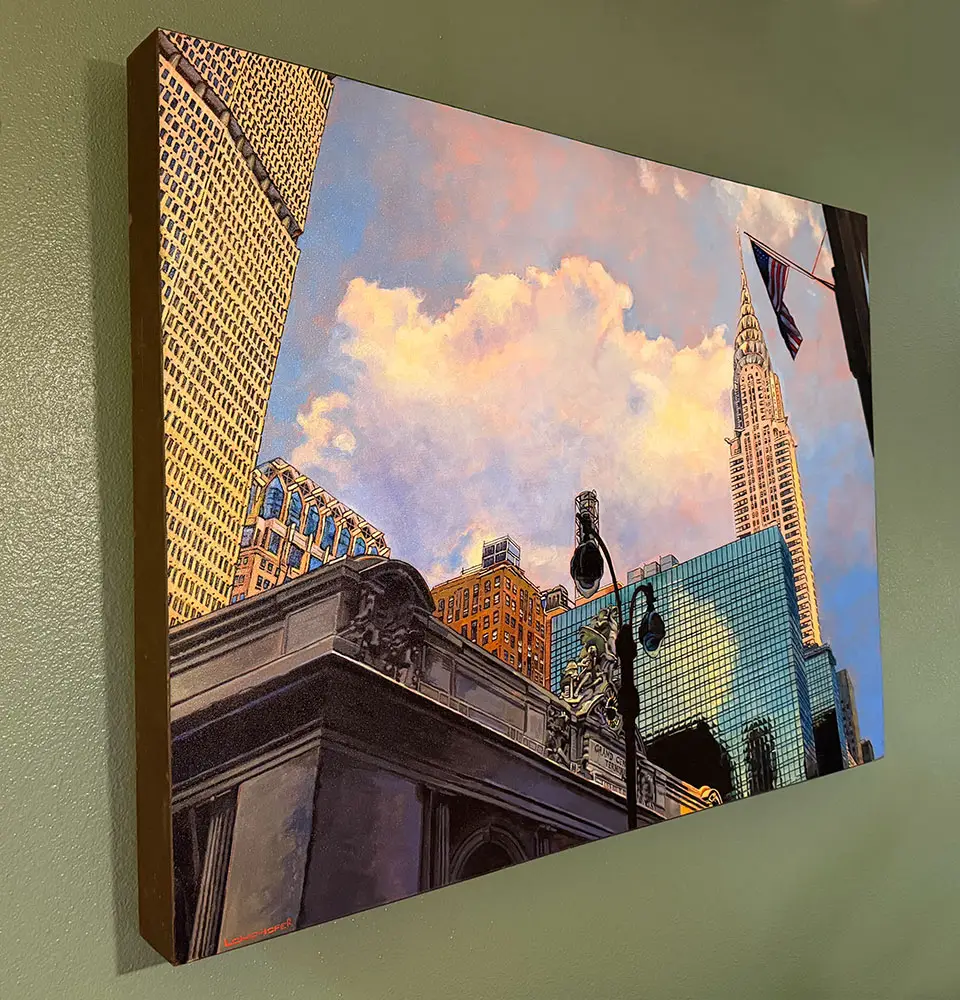 ‘Chrysler Kisses Colors’ Subject Matter: Cityscape (New York) Type: Original Painting Media: Acrylic Size: 30″ x 40″ x 3″ Ground: Gallery Wrapped Canvas