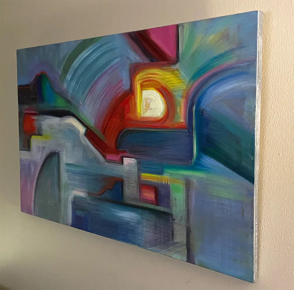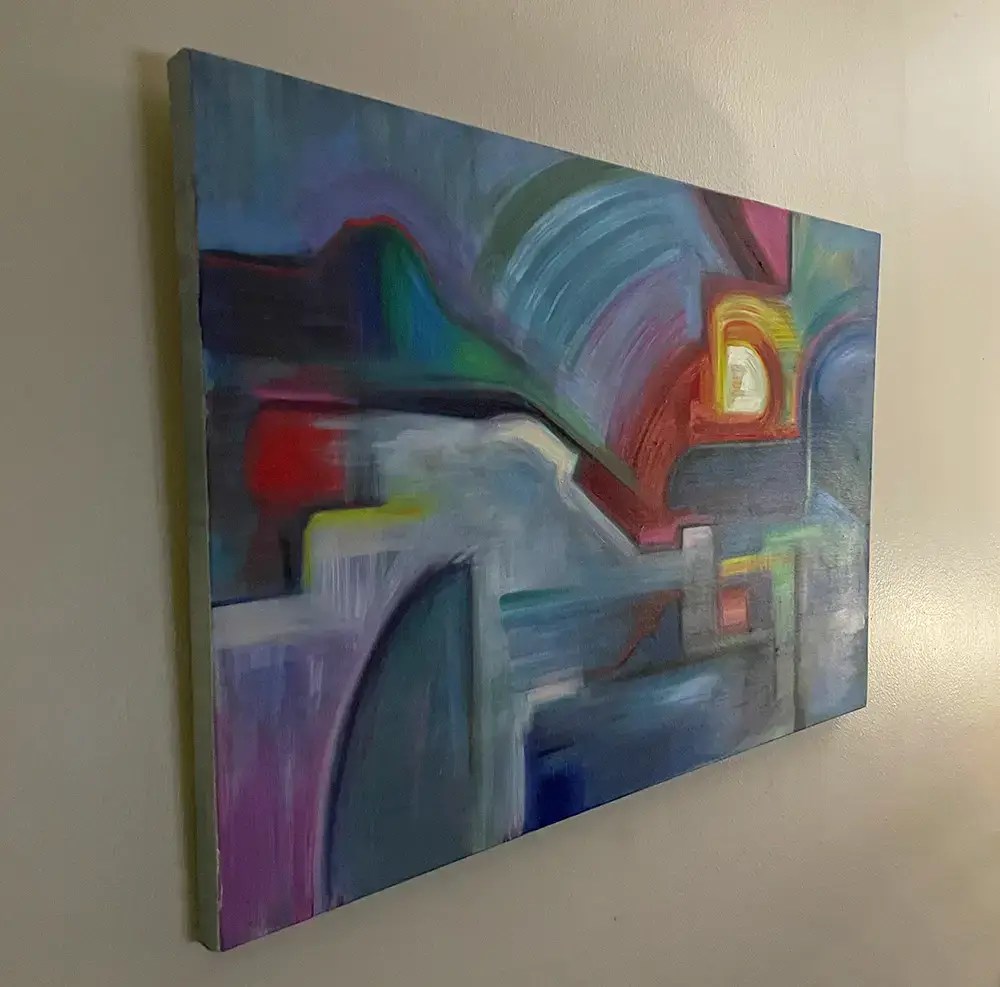 Title: ‘Canyon Crush’ Type: Original Painting Media: Iridescent Acrylic Paint Size: 16″ W x 20″ L x 1.5″ Deep Ground: Gallery Wrapped Canvas, Silver Edges…